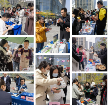 多家美食饮品类企业的摊位更是热闹非凡,爆米花散发着诱人的香气,徽州特色菜臭鳜鱼展现出独特的地域风味,福建糖水清甜可口,柠檬鸡爪酸辣开胃,搭配上精品米饭,满足了白领们不同的口味需求。柠檬茶、茶饮等各类饮品,为春日的活动现场增添了一份清爽。这些美食饮品均由辖区内的企业免费提供,不仅展示了企业的特色产品,也让白领们品尝到了多样的美味。