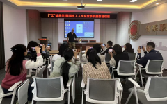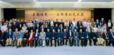 走进画展现场,王四军与刘振生副会长亲切握手致意,两人身着正式西装,胸前的胸花显得格外醒目。背景中一幅色彩斑斓的城市风景画作,仿佛诉说着画家王辉先生对生活的热爱与追求。在画展的长椅上,嘉宾们齐聚一堂,合影留念。墙上“墨韵流光--王辉重彩艺术展”的字样,昭示着这次展览的主题。画家王辉先生的作品,如同墨韵流淌,将观众带入一个充满艺术魅力的世界。