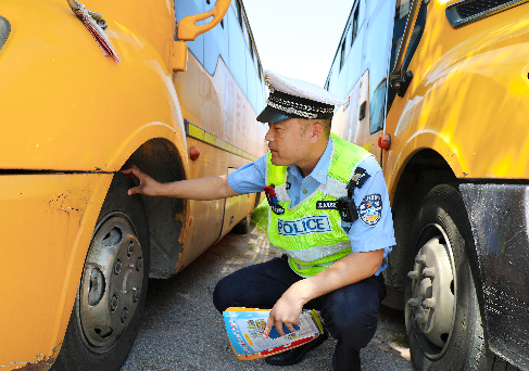 山东省费县交警检查校车迎开学