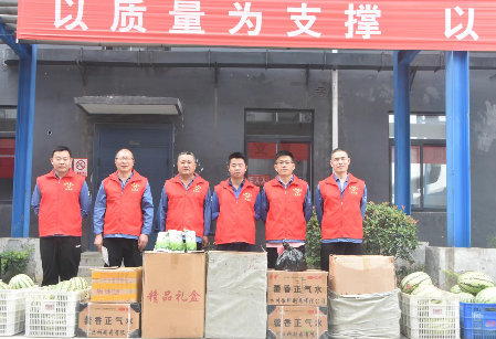 活动现场,总经理孟腾飞带领相关负责人为一线的员工们送去200斤西瓜、100斤茶叶、500瓶风油精、500瓶藿香正气水等防暑降温物资和暖心关怀,总价值约17800元。向奋战在一线的所有职工们致以诚挚的问候和崇高的敬意,并要求各部门要紧密结合,认真做好一线职工的防暑降温工作,根据地区气温情况,避开高温时段,科学合理的安排工作时间和防暑饮食、预防中暑,切实保障职工在高温天气下的安全健康,保护和调动职工生产积极性,促进公司的安全生产与和谐发展。