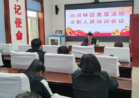 山东新闻网:(杨刚)为加强对法院聘用制文职工作人员的管理,规范聘用制文职人员考核晋升制度,5月14日,白河林区基层法院召开文职人员培训会,党组书记、院长林海军主持会议并讲话,业务部门分管领导及全体文职人员参加会议。