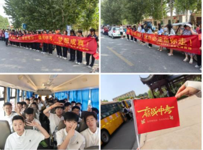 全体老师站在两旁,眼中满是欣慰与期望。他们用温暖的目光注视着每一位初三考生,仿佛在说:“孩子们,勇敢地去拼搏吧,我们一直在这里为你们加油!初三的学子们,在这热烈的氛围中,感受到了无尽的温暖和支持。他们昂首挺胸,步伐坚定,带着所有人的祝福奔向考场。那一张张青春的脸庞上,写满了自信与坚毅,他们知道,自己不是一个人在战斗,身后有着强大的后盾。