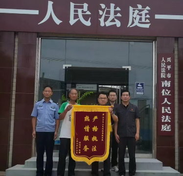 山东新闻网:7月30日上午,任某委托父亲来到兴平法院南位法庭,向史伟庭长等送来“严格执法热情服务”的锦旗,并再三表达衷心感谢之意。