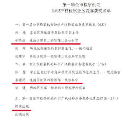 济南市槐荫区检察院在第一届全市检察机关知识产权检察业务竞赛中荣获佳绩