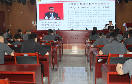 杨党党主任从进一步全面深化改革的重大意义和总体要求、聚焦重点在更高水平上进一步全面深化改革、加强党对改革的领导深化党的制度建设改革等方面入手,对党的二十届三中全会精神进行系统、深刻、生动的阐释和解读。宣讲内容丰富、全面系统、深入浅出,具有很强的理论性、思想性和指导性。让干警深刻领悟全会的重大意义和精神实质,准确把握进一步全面深化改革的指导思想、重大原则、目标任务和方法策略,切实达到开拓思维、打开格局、促进发展的重要作用。