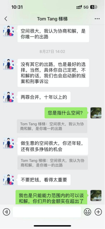 “我觉得是挺好的和解机会,挣钱空间很大,我认为协商和解,是你唯一的出路”