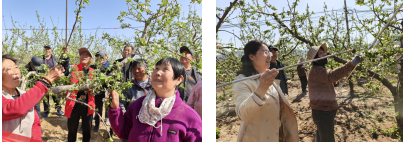 为帮助果农科学管理果树,增产增收。大张庄镇离退休干部党支部在北村建立了“夕阳东升”苹果授课园,把授课堂搬到了果园里,理论联系实际授课,大家看得明白,听得入心,得到了果农学员的热烈欢迎。