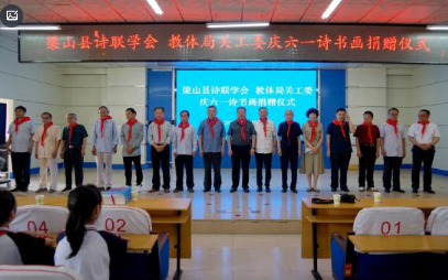 济宁市梁山县诗联学会、梁山县教体局关工委参加一实小庆六一活动并捐赠书画作品