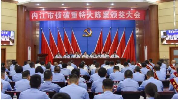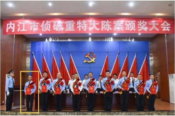 吴建在内江市侦破重特大陈案颁奖大会上。图片来源/内江市公安局官方微信公众号