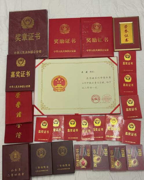 吴建从警生涯所获的诸多荣誉。受访者供图
