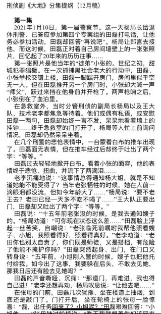 编剧丁三修改后的剧本中,第一个出场的人物即为“杨局长”。受访者供图丁三讲述,随后,他接到电视剧方的通知,剧本要从45集改成25集,投资预算也从1个多亿降到了7500万元,“至于这7500万由谁投资,剧方没说,只是要求我改出一个以杨绍文局长为主角原型的剧本,还要重点突出其余几位领导。”“按最早的设想,《大地》是一部商业刑侦剧,只需要内江警方提供素材、协助审批。”丁三说,但因“领导”的戏份一再增加,按最后的要求,该剧已变成了个别领导的宣传片,不再可能从市场上获得投资,只能由内江市局自己想办法解决资金。丁三介绍,最终,该部电视剧只能“不了了之”;据其推测,是因为找不到人投资这7500万元,无法再推动下去。丁三还说,他煞费苦心撰写了十万字的剧本,且数易其稿,结果至今没有拿到一分钱的稿酬。公开资料显示,杨绍文生于1969年2月,2018年7月至2025年3月担任内江市副市长、市公安局党委书记、局长;2025年3月至今,担任四川省公安厅治安管理总队总队长。03退休警察拒绝出资拍“局长宣传剧”丁三撰写的刑侦剧《大地》分集提纲内容显示,第一集的第一段话,首先出场的便是“杨局长”:“2021年1月10日,第一届警察节。这一天杨局长给退休刑警、已答应参加第四个专案组的田磊打电话,让他务必参加活动……”在举报材料中,吴建同样提及了该部未及开拍的“突出领导”的电视剧。吴建说,“比尔金店持枪抢劫杀人案”告破后,2023年1月21日,杨绍文局长曾亲自在迎接专案组的众警察前给他献花,并指示他在颁奖大会上作汇报演讲,“当时,我这个退休老警察还十分感动。”