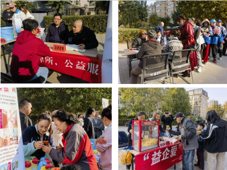 本次公益市集活动得到了各界的广泛支持和参与。众多辖区企业、 志愿者纷纷加入,为活动提供了物资、资金和人力支持。社工为每个企业设置展示台,展示企业的品牌形象;企业自行携带宣传品、产品,现场为居民提供试吃,优惠券、测量血糖血压、法律咨询、心理咨询等服务。他们用实际行动诠释了公益的力量,传递了爱心和温暖。