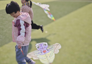 活动中,孩子们在教师的带领下,以小组为单位,围坐在风筝旁,用手中画笔尽情挥洒想象。有的孩子画了明亮的太阳和飞翔的小鸟,希望孤独症小伙伴能感受到温暖与自由;有的描绘了手拉手的小人,寓意着大家一起陪伴孤独症儿童。孩子们专注认真,每一笔都饱含着纯真的善意。绘制完成后,孩子们手持风筝线,迎着微风奔跑起来。五颜六色的风筝在天空中高高飘扬,宛如孩子们心中的梦想,自由翱翔。