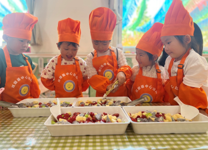 随着“劳动小镇”开园,《劳动最光荣》歌声响起,活动正式拉开帷幕。小班幼儿在美食工坊化身“小厨师”,独立完成水果沙拉制作;中班孩子于沙水乐园合作搭建“梦想城堡”,体验建筑工人的创意与辛劳;大二班“小交警”学习交通手势,维护模拟道路秩序;大一班“小医生”在“爱心医院”模拟问诊、手术,感受医护工作的严谨。