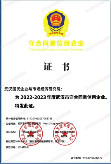 另悉,近日,武汉市市场监督管理局与武汉市发展和改革委员会联合发布了重要公告,公布了2022-2023年度武汉市“守合同重信用”企业名单。其中,武汉国民企业与市场经济研究院凭借其卓越的合同信用管理体系、高度的社会责任感以及长期以来的诚信经营,荣获“守合同重信用企业”称号。