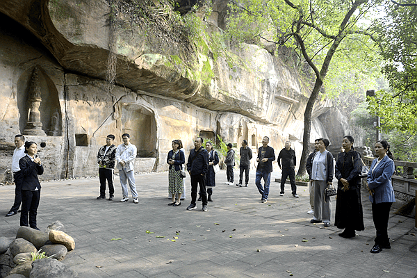 上午8:30分,全体人员前往涪陵区江北街道点易园采风。在讲解员的引领下,大家从入口的石牌坊开始,依次参观了读画廊、洗墨池、三畏斋、碧云亭、点易洞、致远亭、观澜阁等处景点,深入了解易理文化的前世今生,深刻感悟到程颐、谯定、尹焞等历史文化名人“探赜索隐,钩深致远”的治学精神。