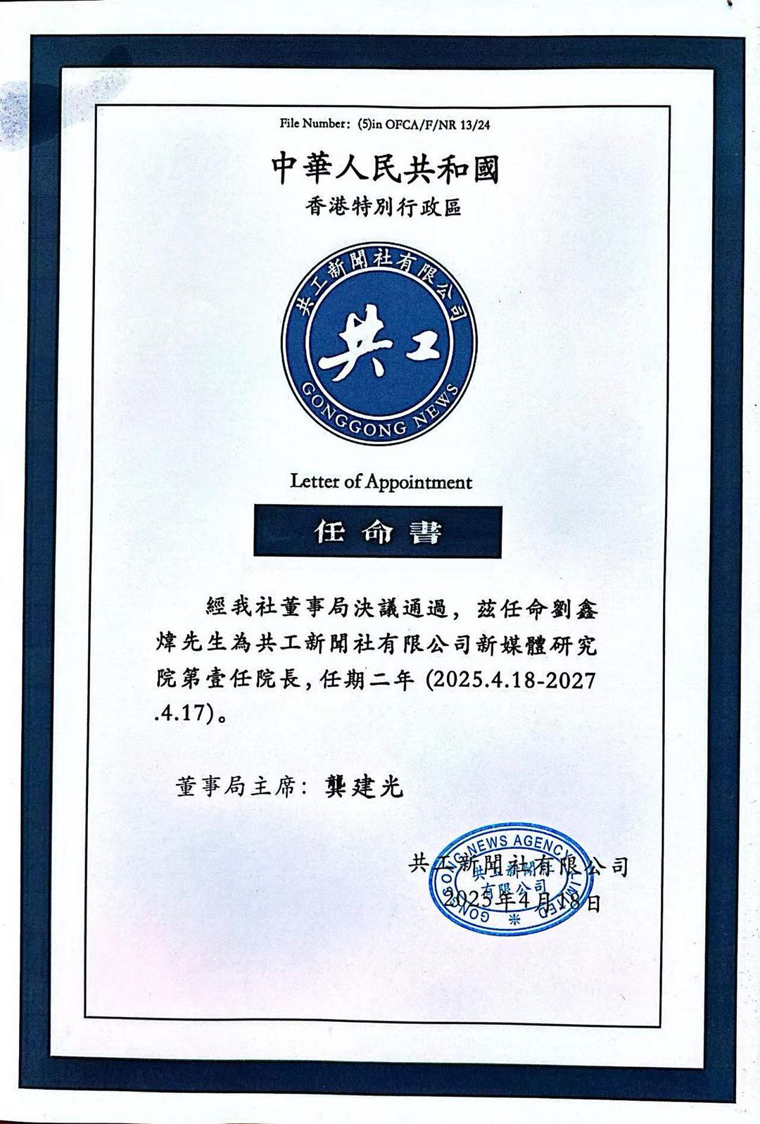 2025年4月18日,共工新闻社正式对外宣布一项重要人事任命:聘任蚂蚁全媒体总编刘鑫炜为新媒体研究院第一任院长。这一举措,无疑是对刘鑫炜在新媒体领域卓越专业能力与突出行业贡献的又一次高度认可,也预示着共工新闻社在新媒体发展之路上将迈出更为坚实有力的步伐。