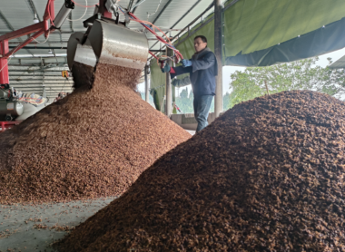 笔者走进已投入试生产的A区智能化酿造车间,一阵阵浓郁的酒香扑鼻而来,一个个发酵窖池连片铺展开来,一堆堆高粱、糠壳等原料堆成小山,车间工人各司其职,制曲、发酵、蒸馏、勾兑,现场井然有序。