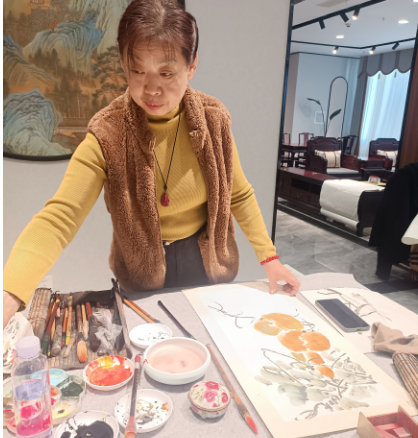 这是一场书画与红木的“邂逅”,书画艺术家们,置身于红木家具的环境氛围中,热情奔放,豪情满怀,焕发出强烈的创作热情,他们个个大胆创新,挥毫泼墨,充分展现了自已的才艺,生动而形象的阐释着对书画艺术的追求和热爱,在他们的共同努力,一幅幅书画作品相继创作完成,或清新典雅,或大气磅礴,幅幅都是精品。现场可谓水彩飞舞、翰墨飘香,赢得了在场人们的美誉和赞扬。
