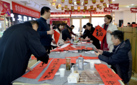 山东聊城市直书画家协会联合华韵琴行开展写春联送祝福活动