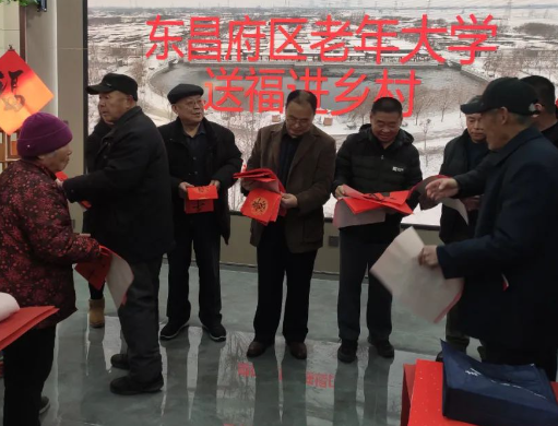 山东聊城市东昌府区老年大学开展“送福进乡村”活动