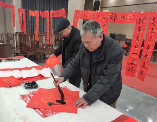 活动现场,区老年大学书法专业的志愿者挥毫泼墨,以笔墨寄托情谊,以春联传递祝福。一张张饱含深情的“福”字,一副副寓意吉祥的春联,不仅承载着老年大学对村民们的美好祝福,还饱含着大家对幸福生活的向往。到场的老年朋友手捧墨香浓郁、祝福满满的春联和“福”字,笑容满面,赞不绝口,喜悦之情溢于言表。