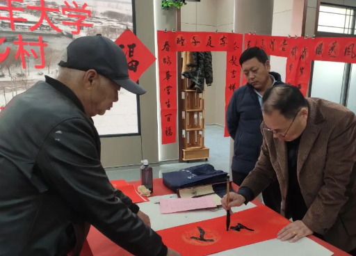 为进一步弘扬中华民族优秀传统文化,营造温馨祥和、欢乐喜庆的节日气氛,1月28日,东昌府区老年大学来到道口铺街道任堤口村开展“翰墨书祥瑞·送福进乡村”为主题的春联赠送活动。