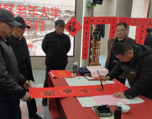 近年来,东昌府区老年大学坚持开展文化下乡惠民活动,通过义写春联等方式,弘扬真善美,传递正能量,展现了广大学员的精神风貌和艺术风采,为传承文明、丰富乡村文化生活贡献了银龄力量。下一步,东昌府区老年大学将持续开展志愿服务活动,进一步提升我区乡村老年朋友的幸福感、获得感。