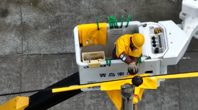 6月21日,在上饶市信州区拍摄的10千伏道口线不停电作业施工现场。