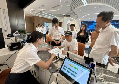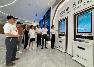 在国网上饶供电公司天佑路智能化营业厅,代表们随着大厅工作人员一同体验了智能办电、交费、打印票据等服务,观看了公司绿色能源发展、城区网格化服务、支持乡村振兴等成果展示,,并兴致勃勃地通过公共系统查询到了服务自己居住地的供电网格服务人员。