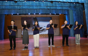 年级的六位管理老师合作展示了诗朗诵《大写的中国》,他们的声音或激昂或深情,将祖国的壮丽山河和辉煌历史表达得淋漓尽致。音乐老师蒋倜也为大家带来了歌曲《如愿》。她的歌声悠扬动听,同学们陶醉其中,感受到了祖国的温暖和希望。