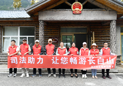 白河林区基层法院在旅游旺季组织志愿者到长白山北景区开展“司法助力,让您畅游长白山”志愿服务