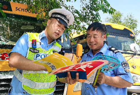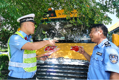 山东省费县交警检查校车迎开学