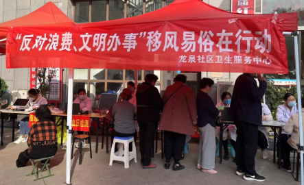 山东滕州龙泉社区卫生服务中心开展“反对浪费、文明办事”移风易俗宣传活动