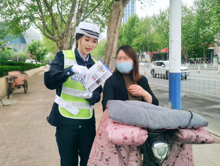 临沂市费县交警开展“一盔一带”交通安全宣传劝导活动