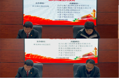 签约仪式上,首先由党组书记、院长朴铉进介绍了法院系统发展历程、队伍基本情况、党支部特色亮点等内容,并就联动谋划党建工作、联动举办主题党日活动、联动开展业务工作交流、联动检查党支部材料等“四联动”结对共建活动进行了规划与展望。随后,和龙林区基层法院分别与长白山森工集团和龙林业有限公司、长白山森工集团八家子林业有限公司、和龙市光明街道林园社区、和龙市光明街道天池社区、八家子镇河南社区、八家子镇河北社区代表签订了《党建结对共建协议书》。