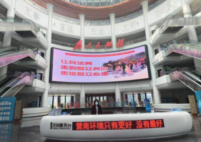 民法典进大厅。利用为民服务中心LED大屏,播放《民法典》宣传短片和图片,让来大厅办事的群众感受浓厚的学习宣传氛围。