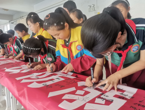 山东沂南孙祖小学开展防溺水承诺签名活动