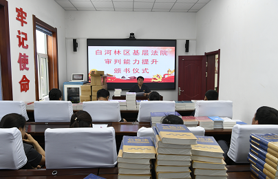 收到书籍后,白河林区基层法院立即将书籍分门别类,根据各业务庭的不同需求举办图书赠送仪式,将书籍发放给干警。